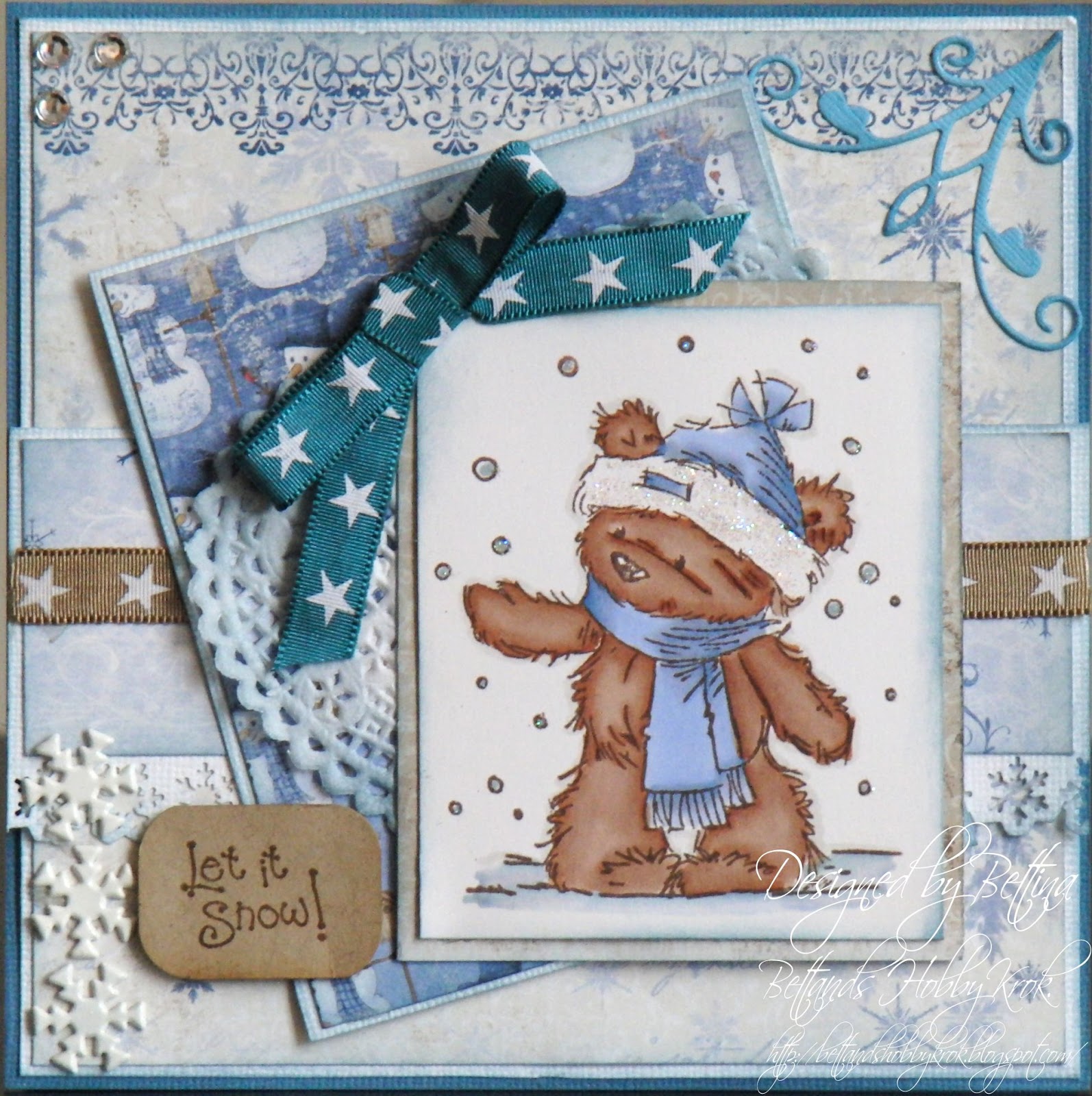 This week our challenge for you is a Recipe - 4 different papers, 3 brads, 2 ribbons and 1 image.
