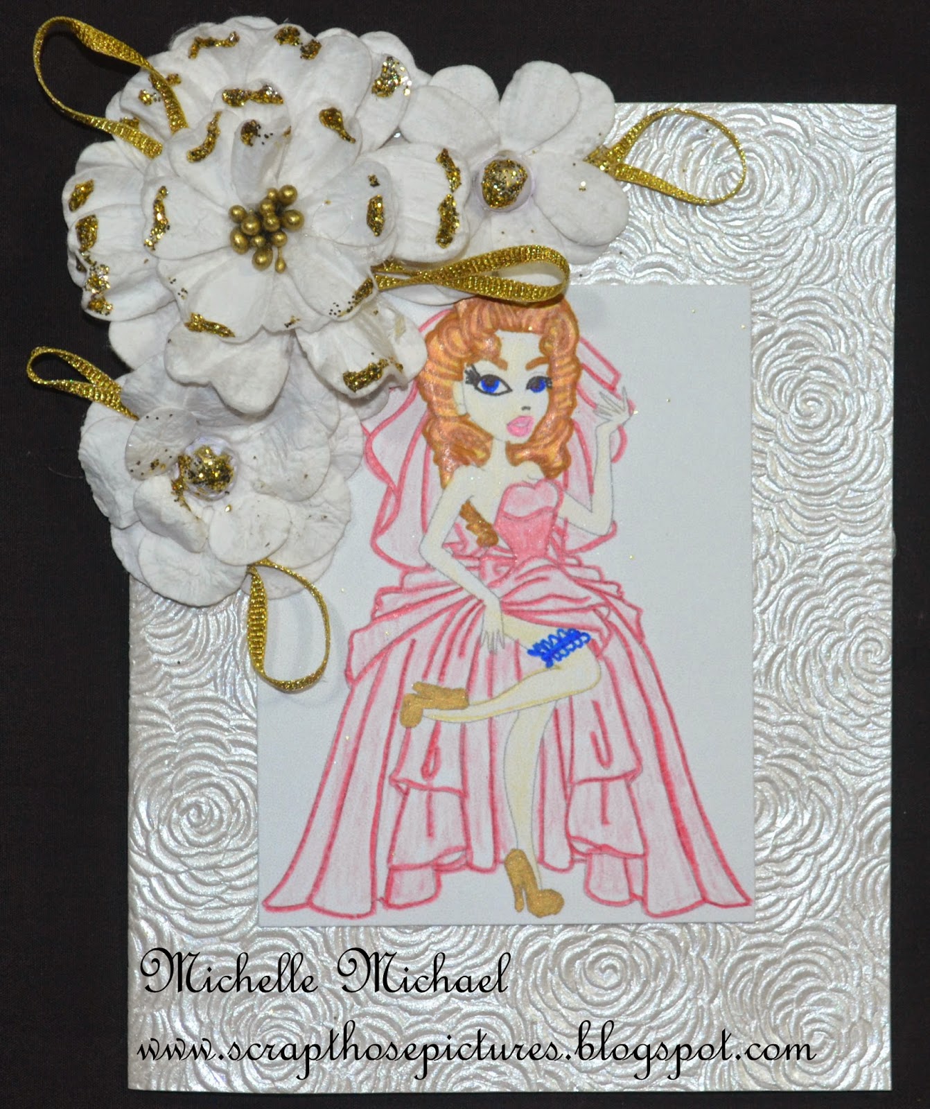 It is time for a new challenge at Incy Wincy Designs.  This week, we would like to see your wedding makes with a colour scheme of white on white with gold.