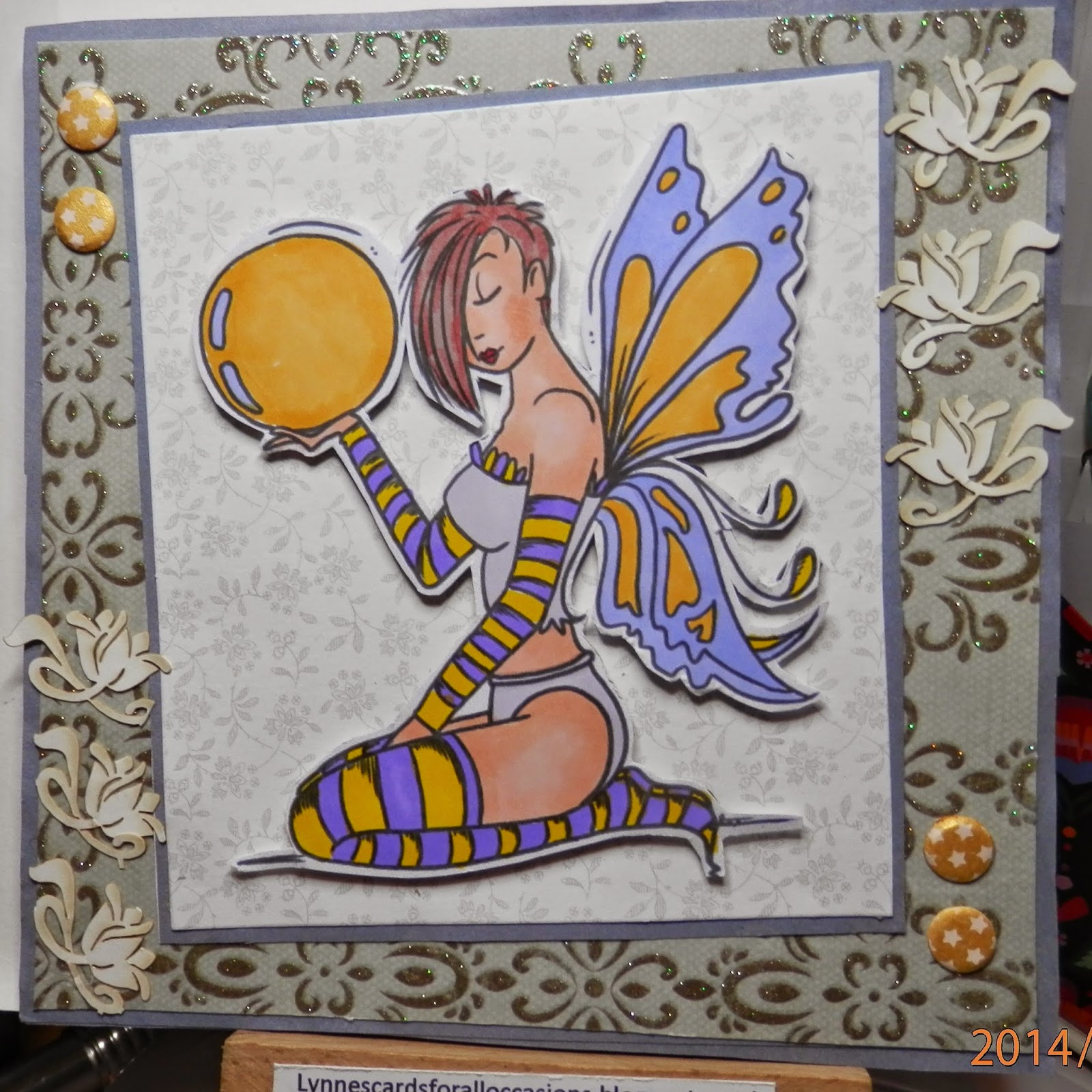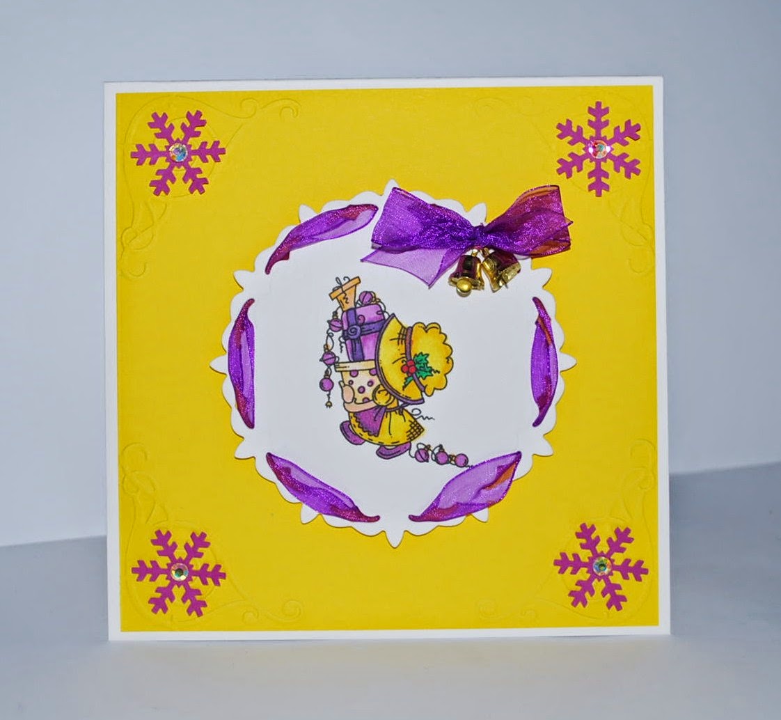 And now for the new challenge. This week we would like to see you use Purple and Yellow on your creations. We are sponsored by Bugaboo Stamps this week: